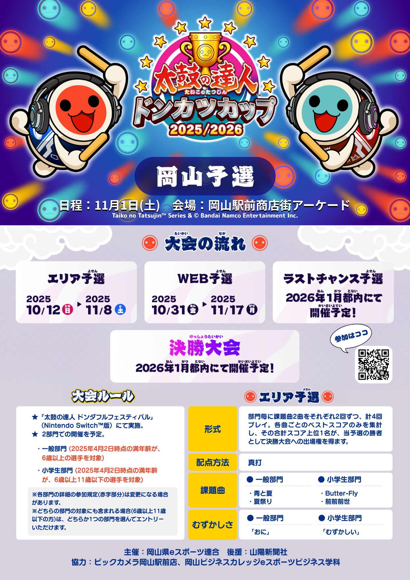 【大会名称】太鼓の達人 ドンカツカップ 2025/2026 岡山予選